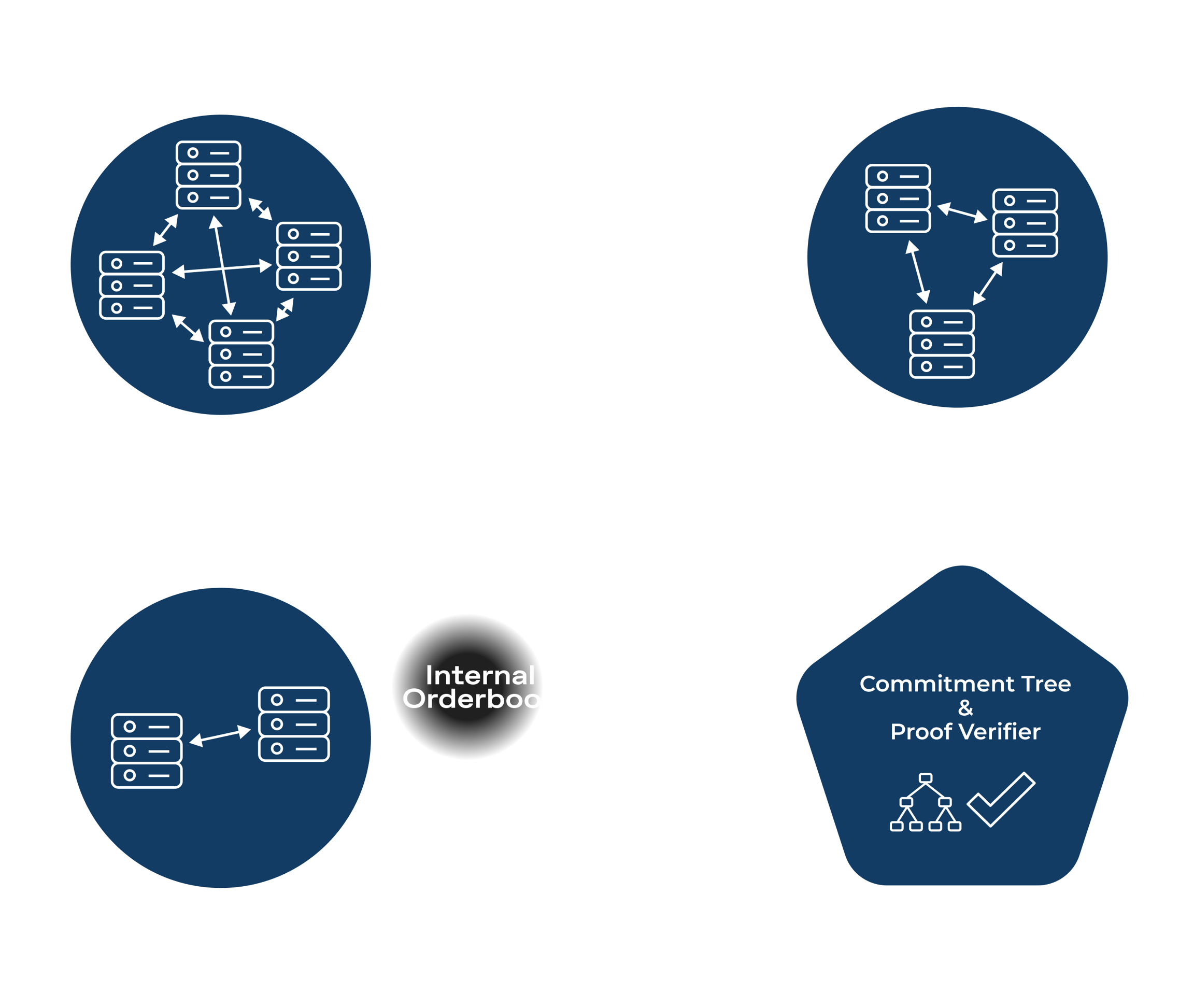 Fundamentally, Renegade simply consists of a p2p gossip network of many independent relayers that constantly handshake and perform MPCs with each other as new orders enter the system. Relayers never custody assets, and are merely given view access to the wallet in order to compute pairwise MPCs.